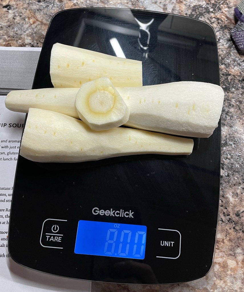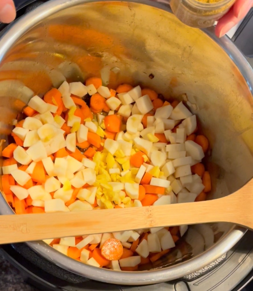 Add carrots, parsnip, and 2 inches of a peeled and diced ginger root in your InstantPot.