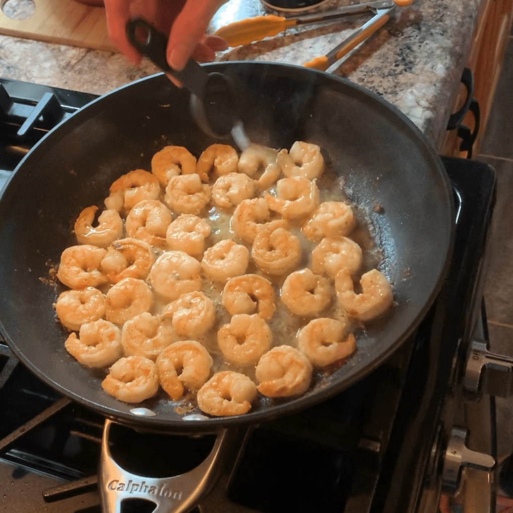 Turn the shrimp and add 2 tbsp of lime juice and cook for 2 more minutes, until shrimp are pink and no longer translucent.