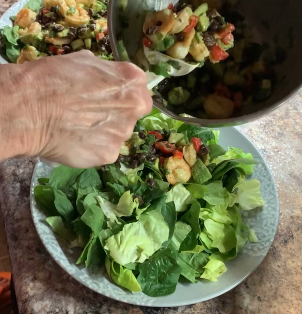 Add shrimp mixture to the vegetables and toss. Serve over lettuce.