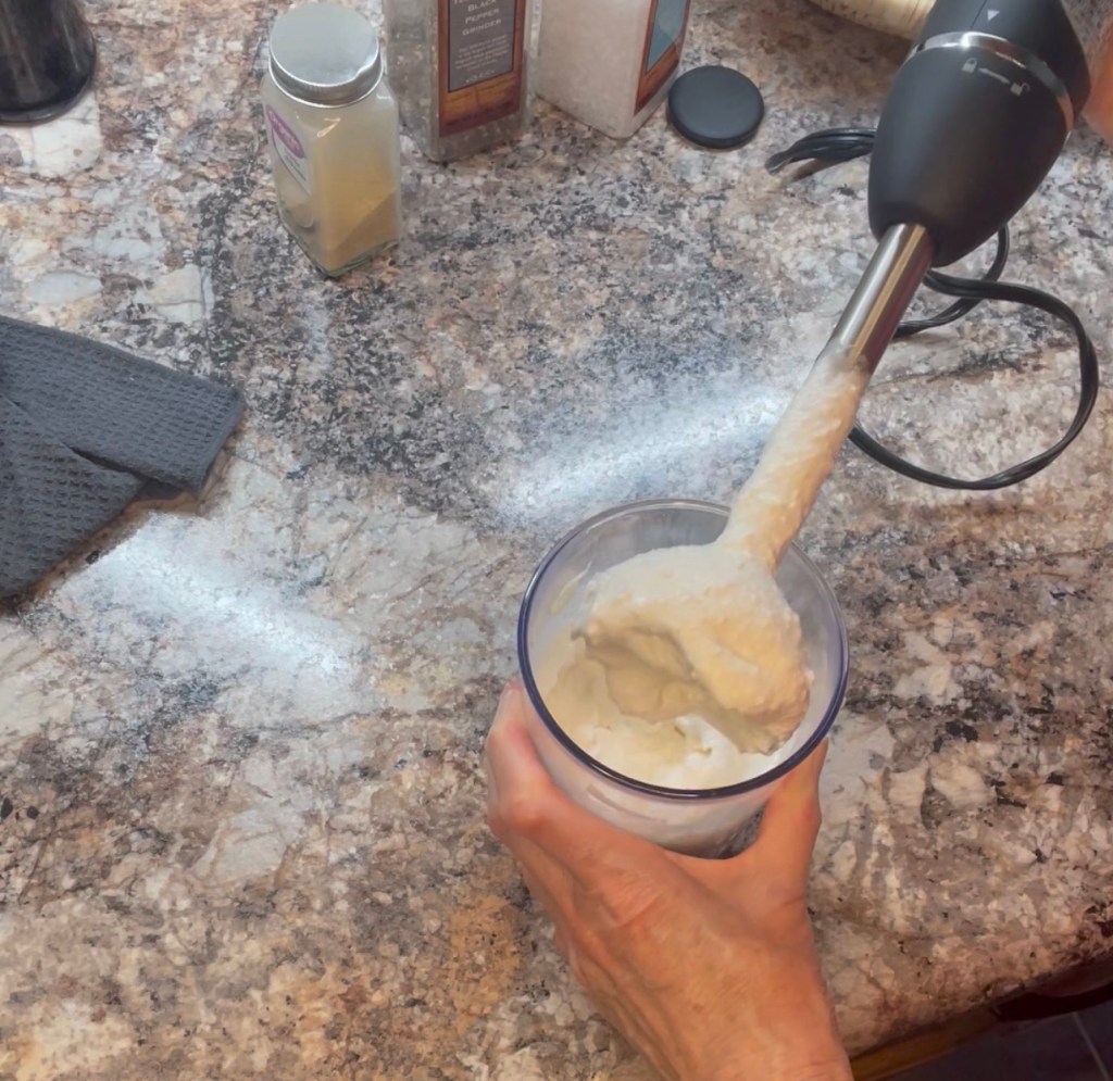 With an immersion blender, blend sauce ingredients for 3-4 minutes or until smooth.