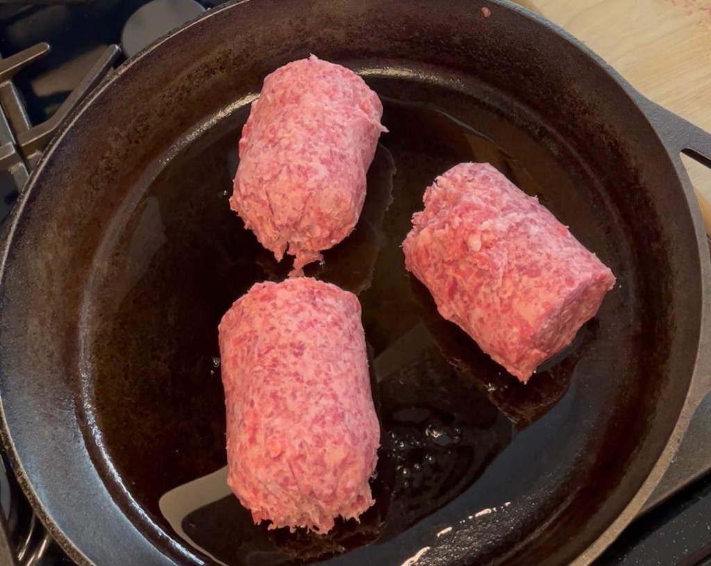 Brown 1 1/2 lbs of ground pork in 2 tbsp of sesame oil over medium high heat for about 5 minutes.