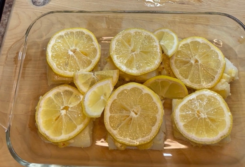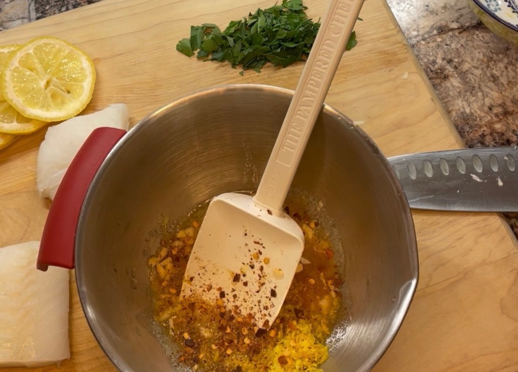 Add the cod fillets to the bowl and toss to coat in the lemon butter sauce.